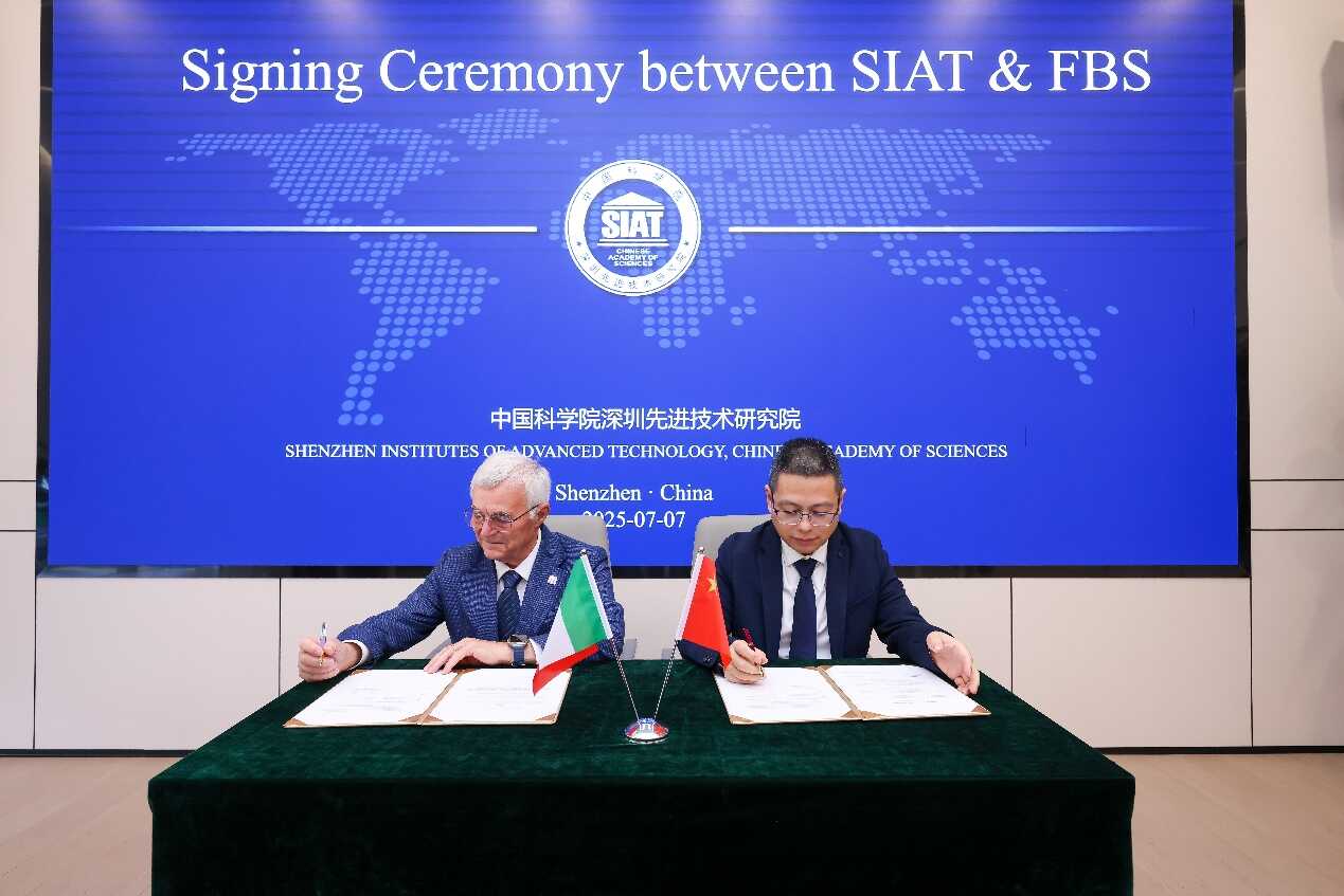 7月7日,中国科学院深圳先进技术研究院(以下简称“深圳先进院”)与意大利锡耶纳生物技术园基金会(Fondazione Biotecnopolo di Siena,以下简称“FBS”)正式签署机构间合作协议,标志着双方在黏膜疫苗佐剂领域的战略合作全面升级。合作协议由FBS总干事Gianluca Polifrone与深圳先进院副院长梁栋代表双方签署,意大利驻广州总领事Valerio De Parolis、FBS科学总监Rino Rappuoli、中国科学院国际合作局欧洲处处长宁博伦等出席见证。