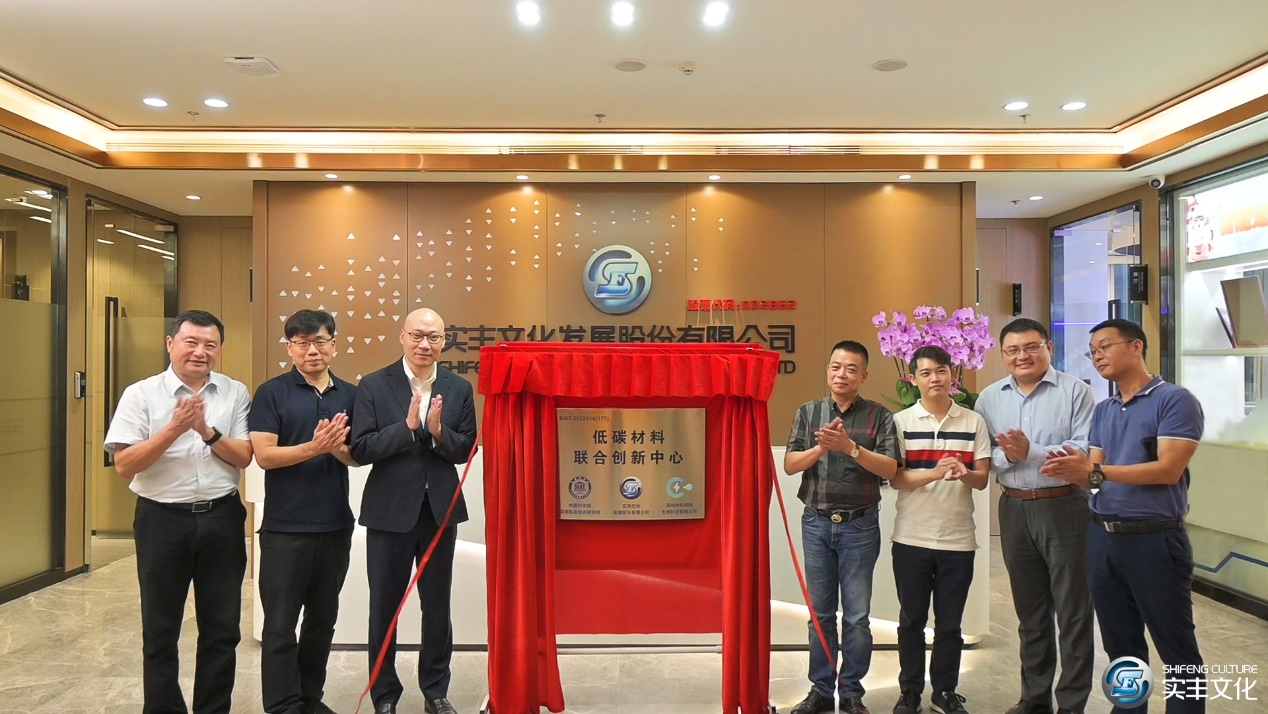 近日,中国科学院深圳先进技术研究院、深圳中科翎碳生物科技有限公司与实丰文化发展股份有限公司(股票代码:002862)签署《联合创新中心合作协议书》,并于2022年8月5日在前海卓越金融中心实丰文化发展股份有限公司顺利举行“低碳材料联合创新中心”揭牌仪式。