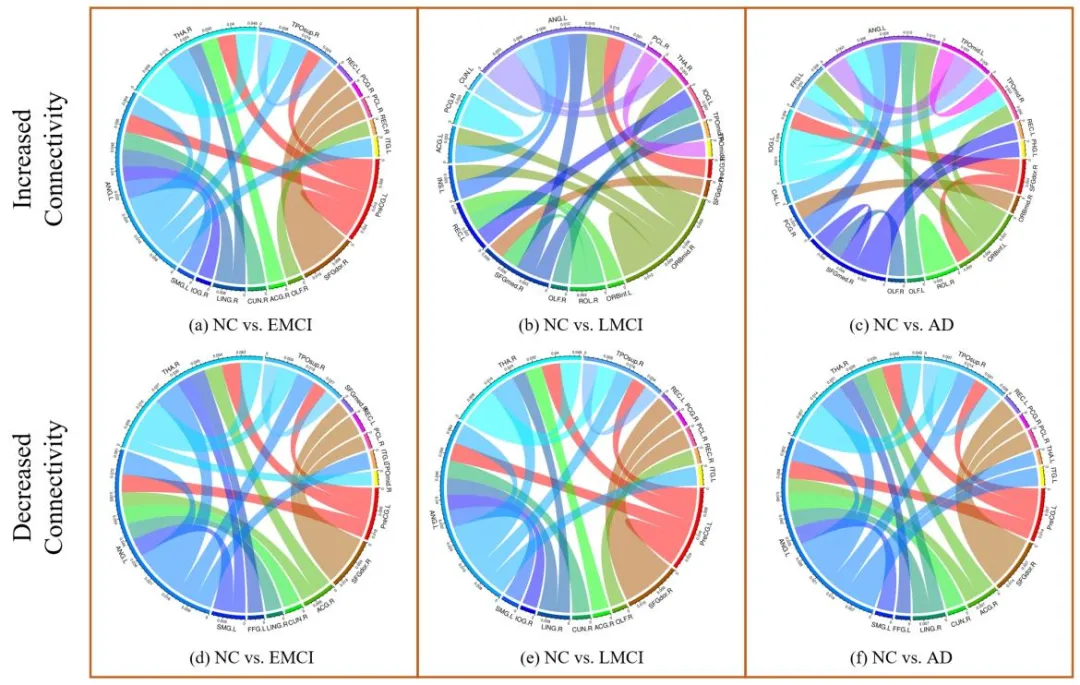 通过对AD和ASD不同阶段脑网络连接模式分析发现:两种模式的脑网络连通性在疾病早期都呈上升趋势,然后在疾病中期-晚期阶段时减少到较低水平。这一发现与脑科学研究中的神经连接代偿机制一致。