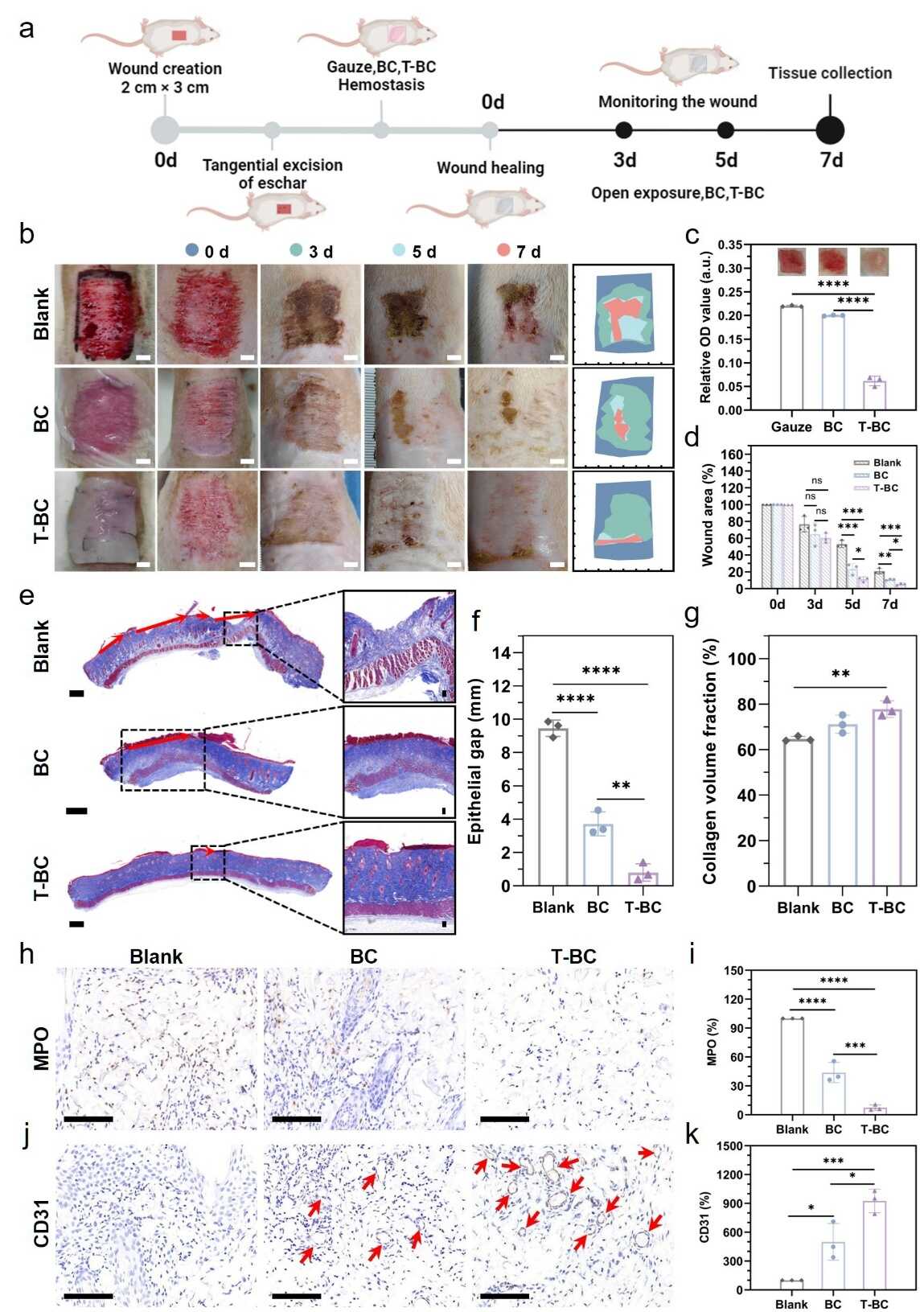 图3 | 大鼠削痂创面模型中止血促愈效果评估