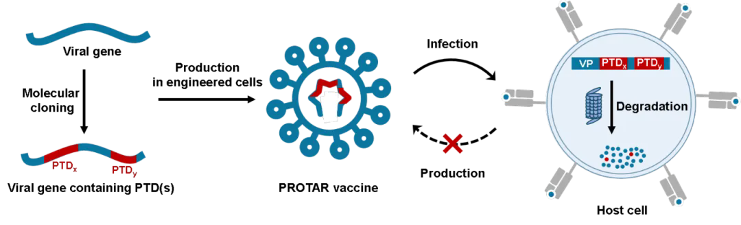 PROTAR减毒活疫苗策略利用宿主细胞中的蛋白质降解机器“泛素-蛋白酶体系统”,操控病毒蛋白的稳定与降解,将病毒转化成为减毒活疫苗。