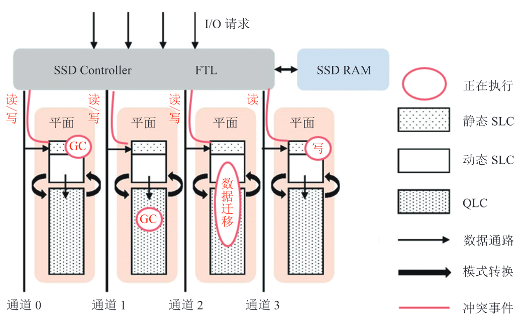 摘要:混合式固态存储已成为当前消费级终端领域的主流存储设备。然而在学术领域,关于混合式固态存储设计和问题的讨论与分析仍不够充分。该文针对现有的混合式存储设备,结合相关领域前沿研究,从混合式闪存架构介绍、亟待解决的痛点问题和相关研究进展 3 个方面进行讨论和分析。文章介绍和分析了混合式闪存的主流架构及其特点,展示了在真实设备平台上测试的实验数据结果,揭露了混合式闪存中亟待解决的问题,重点介绍了读特征、写特征、读写冲突和容量特征相关问题。同时 介绍了相应问题的最新研究进展,并分析了各个技术的优劣和未来的发展方向。