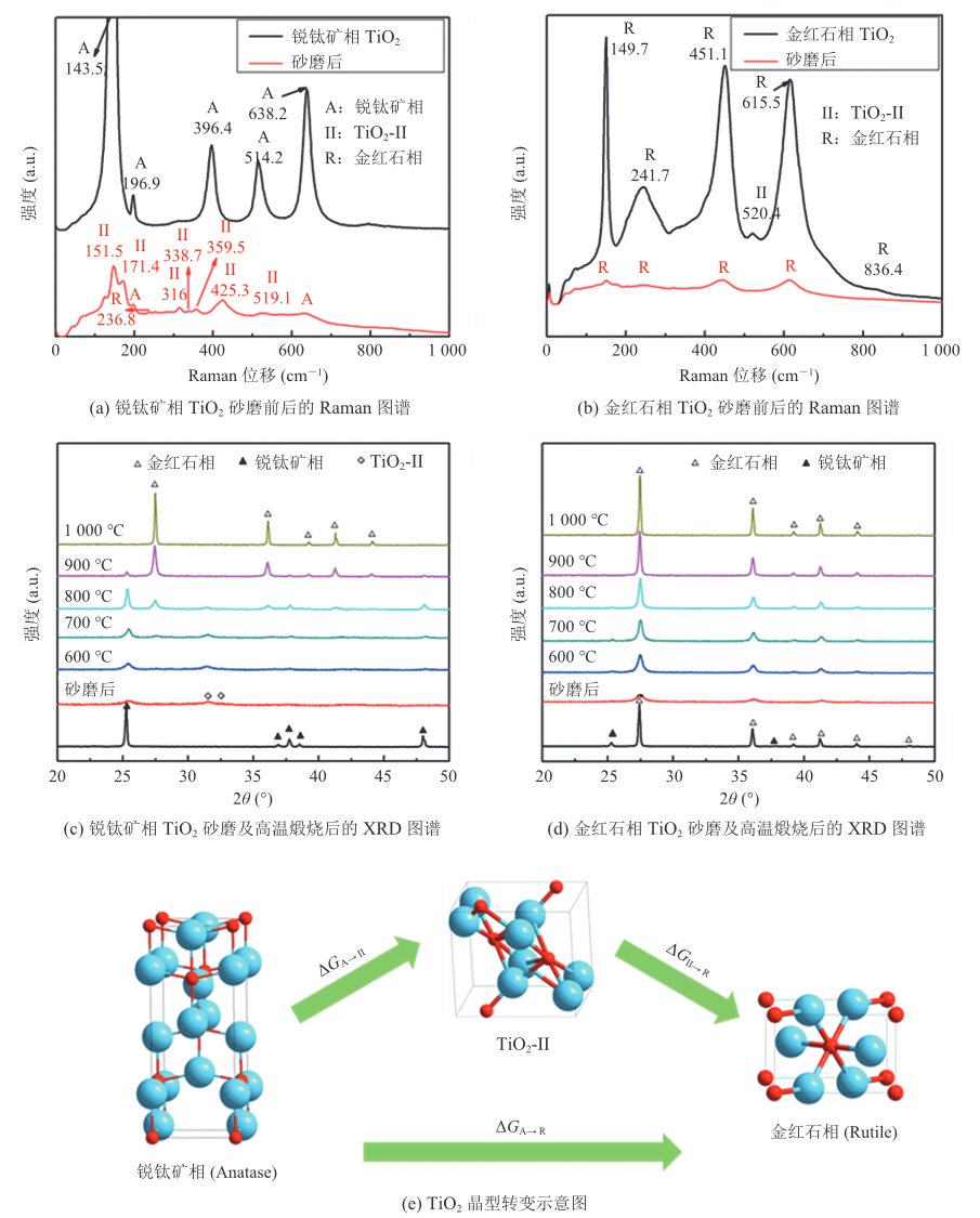 摘要:高四方性的 BaTiO 3 超细粉体是下一代多层陶瓷电容器的关键材料。该文探究了砂磨介质尺寸和原料 TiO 2 晶相对反应物活性、产物介电性能的影响,并利用砂磨固相法成功合成了高四方性 BaTiO 3超细粉体。分析场发射扫描电子显微镜照片和 X 射线光电子能谱发现,细砂磨介质粉碎原料的效率更高,机械活化作用更强。Raman 光谱和 X 射线衍射图谱显示,在高能砂磨过程中,TiO 2 由锐钛矿相先后转变为 TiO 2 -II 相、金红石相。分析微商热重曲线和 X 射线衍射,结果表明,砂磨介质更能有效降低反应温度和抑制 Ba 2 TiO 4 的生成。此外,高分辨透射电子显微镜图像揭示了 BaTiO 3 的形成是 Ba 2+向 TiO 2 晶格扩散的过程。该文相关实验结果表明,利用直径为 0.1 mm 的 ZrO 2 磨球对锐钛矿相 TiO 2 和 BaCO 3 混合物砂磨 4 h,并在 1 100 ℃ 煅烧 3 h 后,获得了平均粒径为 186 nm、四方性为 1.009 2且分散性良好的 BaTiO 3 粉体,该粉体在 1 250 ℃ 烧结的陶瓷相对密度为 96.11%,居里点(137.8 ℃)的介电常数峰值为 8 677。