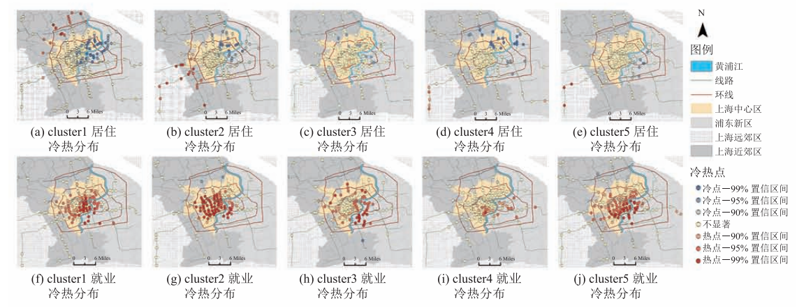 摘要:针对目前通勤群体的划分方法较少考虑通勤行程的时间连续性特征的问题,该文基于上海市一周的地铁刷卡数据,构建了通勤人群职住识别模型,并定义了一种通勤行程时间相似度计算方法,然后提取特征对通勤群体进行层次聚类,并利用热点分析模型进行空间分析和可视化,探究通勤人群的时空规律性及上海市的职住空间分布特征。结果表明:(1)就业单中心模式明显,不同簇的就业热点均分布在市中心,居住点呈“西热东冷”的空间组织特征。(2)主流通勤时段为 7:00-8:30 和 17:00-19:00,近半数通勤人群在早主流时段通勤。(3)不同通勤类型的出行时间特征总体上与其职住热点分布一致。该文提出的研究方法揭示了通勤人群的出行时间规律与其职住热点空间分布具有较强的关联性,可为城市运行管理和城市规划提供参考信息。