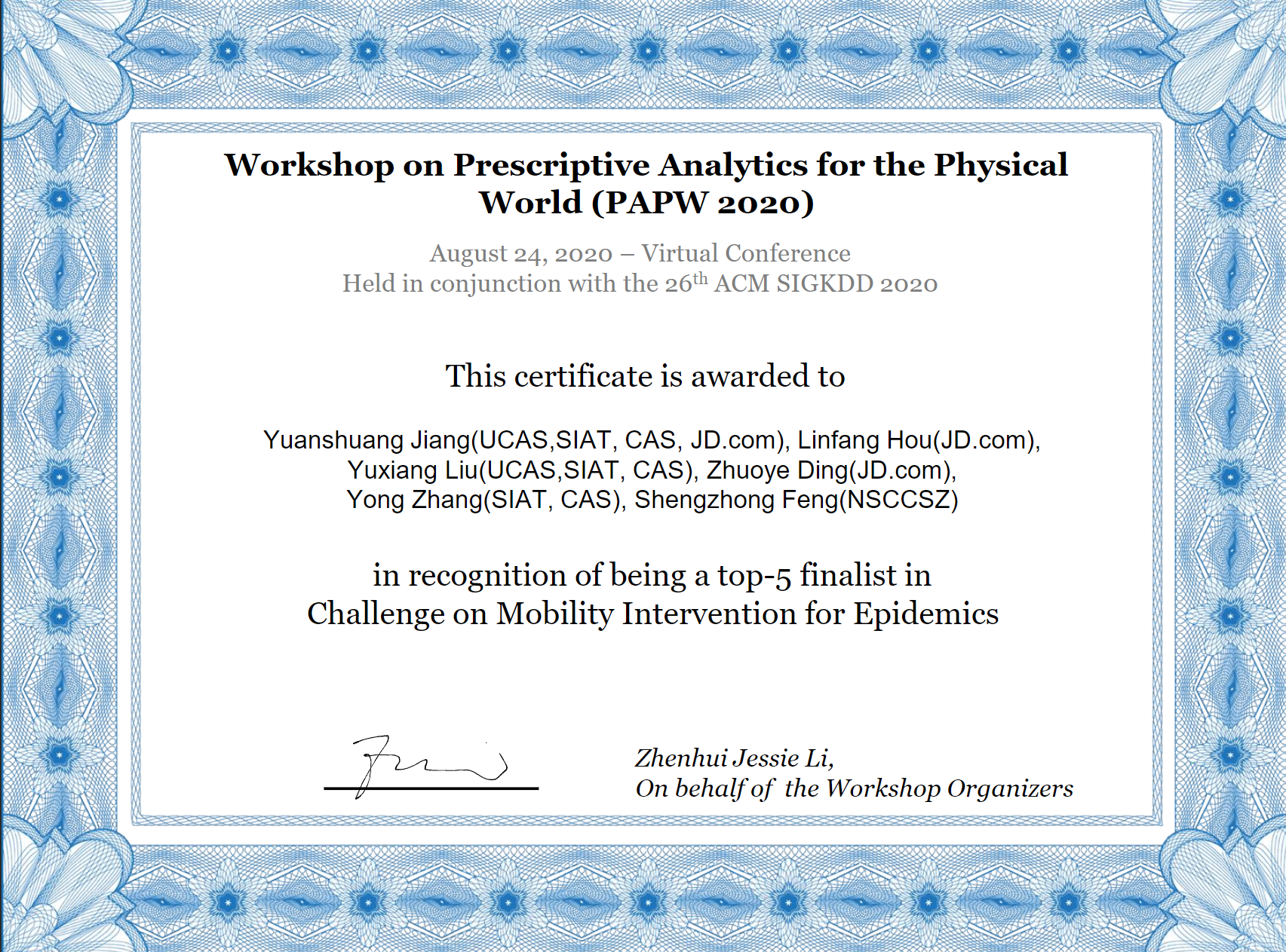 深圳先进院联合团队取得KDD PAPW 2020流行病流动干预竞赛冠军