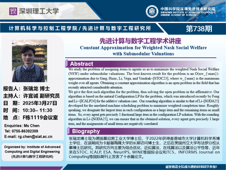【2025年3月27日 数字所/计算机学院】Constant Approximation for Weighted Nash Social Welfare with Submodular Valuations