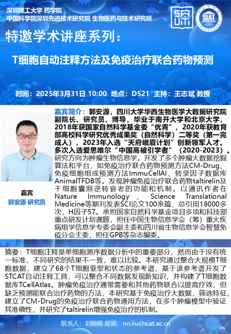 【2025年3月31日 药学院/医药所】T细胞自动注释方法及免疫治疗联合药物预测
