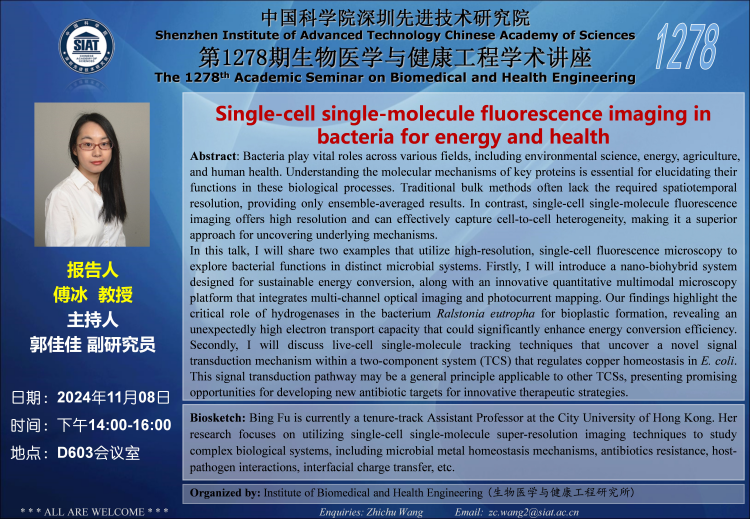 【2024年11月8日 医工所】Single-cell single-molecule fluorescence imaging in bacteria for energy and health