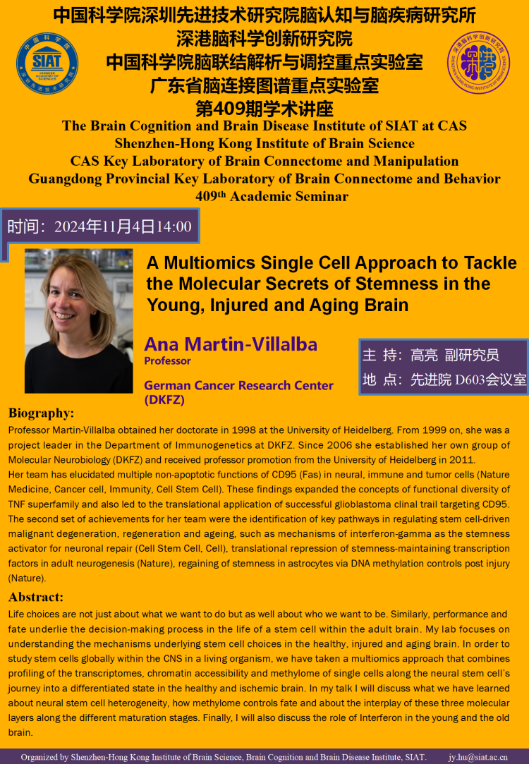 【2024年11月4日 脑所/深港脑院】A Multiomics Single Cell Approach to Tackle the Molecular Secrets of Stemness in the Young, Injured and Aging Brain