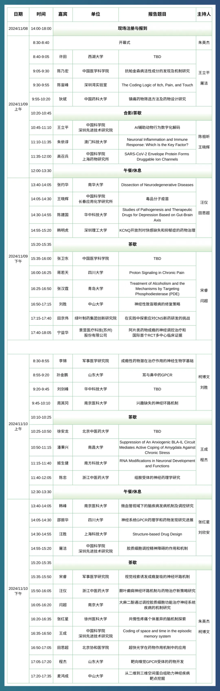 【2024年11月8-10日 中国药理学会神经精神药理专业委员会、中国药物滥用防治协会成瘾与脑科学分会、深圳市脑科学学会共同主办】2024神经药理前沿论坛暨中国药物滥用防治协会成瘾与脑科学分会年会暨深圳市脑科学学会第三次年会