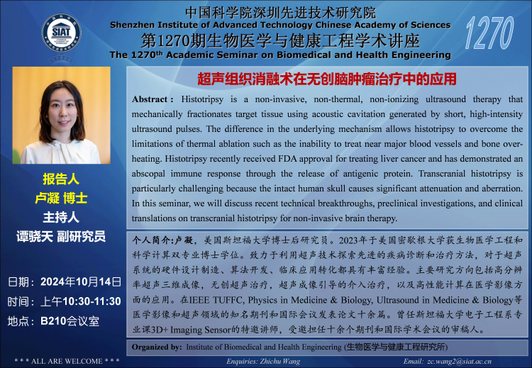 【2024年10月14日 医工所】超声组织消融术在无创脑肿瘤治疗中的应用