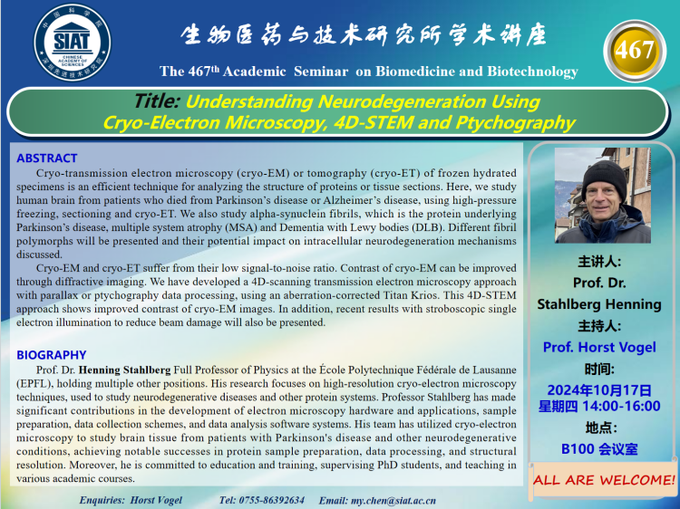【2024年10月17日 医药所】Understanding Neurodegeneration, using Cryo-Electron Microscopy, 4D-STEM and Ptychography