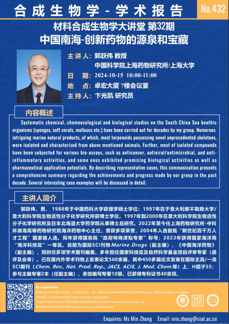 【2024年10月15日 合成所/合成生物学院】中国南海-创新药物的源泉和宝藏