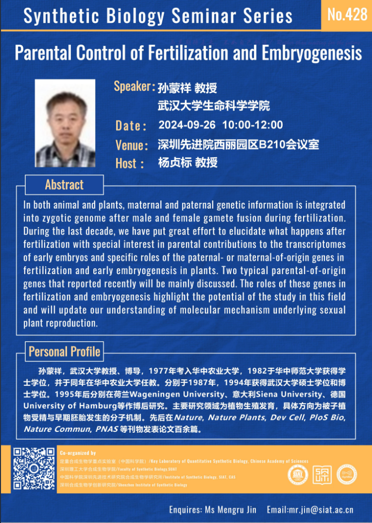 【2024年9月26日 合成所/合成生物学院】Parental Control of Fertilization and Embryogenesis