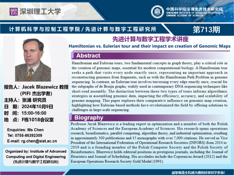 【2024年10月9日 数字所/计算机学院】Hamiltonian vs. Eulerian tour and their impact on creation of Genomic Maps