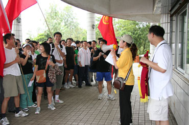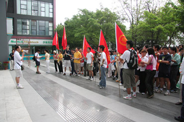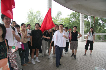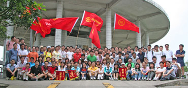 全体合影:青春的笑颜,年轻的脸庞,飘扬的院旗。