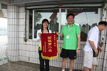 大家努力战胜自我,在运动中收获健康,收获快乐,感受大自然的美妙与神奇。令人佩服的是,好多队员都是拼尽最后一点力气,奋力冲向终点,其澎湃的激情、不甘落后的心情,溢于言表。一个多小时后,参赛队员陆续到达顶峰。不管名次如何,只要坚持到最后,都是最终的胜利者。最终第6小组获得了第一名,第3、第2小组则分获第二、第三名。稍事休息后,大家簇拥着队旗留影纪念。