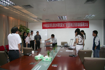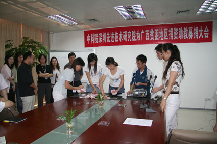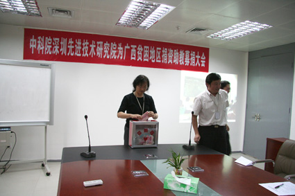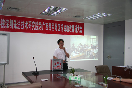 白建原副院长在会上做了总结发言,她引用孟子“穷则独善其身,达则兼济天下”的古训,以及通过无数先烈前辈为建立新中国浴血奋战二十八年、建设深圳特区二十七年的艰苦历程,谈到了作为科技工作者的社会责任和历史使命。创新文化建设是我院筹建工作一个重要的组成部分,组织建设、文化建设必须紧紧围绕筹建工作、服务筹建工作,此次活动的开展,也是促进先进院员工进一步了解国情,从而增强作为科技工作者对中国经济社会发展的责任感和使命感的一个举措。帮助天峨县的一些孩子健康成长的同时,我们也将得到成长。为保证此项工作能够顺利、持续发展,白院长在会上公布了捐资助教活动执行小组、监督小组成员名单及监督方式等。