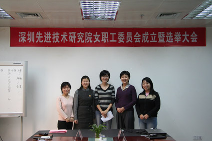 先进院第一届女职工委员会委员 (左起:曹文静、蔡丹静、冷静、王岚、范媛媛)