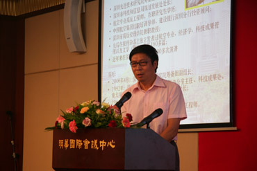 徐晓东副院长 幻灯片上,清晰地呈现着一位神采奕奕张大双臂屹立在埃及金子塔前的男子。晓东院长在讲台上说:“照片上的这位男子今年已经六十岁了,也就是我本人。”在座诸位此时惊讶无比,看来60岁确实还很年轻! 以这样的开场白,晓东院长娓娓道来自己43岁后到深圳发展的十八年磋跎岁月。他现任先进院筹备组副组长;深圳市科技和信息局规划发展处处长。1992年曾先后任深圳市科学技术局办公室主任、科技成果处、重大项目处、项目监督管理、规划发展处处长;曾在南昌飞机制造公司任处长,曾是航空航天部650研究所飞机设计工程师。曾在内地当了8年的党政一把手,90年代南下深圳工作。 晓东院长生动地描述了初到深圳的种种艰辛,与在座诸位分享曾经的苦难与喜悦。晓东院长谈及初来时深圳到处尘土飞扬,破烂不堪的景象,并以科技园、深南大道等新老相片展示进行实景对比,使大家对深圳在改革开放中的样貌变迁感慨万千:曾经在深圳,打一个电话到广州耗时8个小时,曾经的深圳,到沙头角要坐囚车,曾经的深南大道泥泞不堪,曾经的科技园尘土飞扬,曾经的上海宾馆,只是路边的一座土房子……;而如今的深圳,到处高楼林立,规划整齐,发展神速,人才济济,一个小小的渔村,经过改革开放的洗礼,已经成为人们所向往的创业热土,独具魅力的现代化大都市。 晓东院长由于在深圳从事了较长时间的科技工作,对深圳高科技的发展过程了然于胸,他以工作中发生的一些事例侧面说明深圳政府在高科技企业的发展中重视服务意识,发挥了重要的保障作用。他分别以自己与华为、比亚迪之间发生的故事折射出作为一名政府的公务员,工作中创新意识和服务意识对高科技企业的发展产生的巨大作用。 晓东院长还以现身说法分享了自己46岁仍然报考研究生的经历,说明知识对自身能力发展的重要性。他认为,想要为深圳为国家做更多的事情,思路更开阔,眼界更长远,必须让自己更上一层楼。 两年前,晓东院长参加先进院的筹建工作,期间,不辞辛劳地努力推动区域合作具体项目的进程,在先进院与区域经济的合作中发挥了重要的作用。他表示,与中科院的合作非常愉快,自己还将在以后的工作中更投入,为先进院的发展做出贡献。他以多年的实践、体会与领悟鼓励在座的员工与学生:深圳这座城市是科技创新的沃土,希望大家坚定信念,持之以恒,加强本领,在这片神奇的土地上创造辉煌。 树科学创新之魂,造科学创新之锏 --张元亭所长《浅谈科技创新的源、魂、锏》