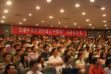 --先进院“我看中国改革开放三十周年”主题报告会 中国,在改革开放的三十年中,风雨兼程,从一个贫穷落后,信息闭塞的国家发展成为一个国内生产总值位居世界第三的国家。深圳,从一个昔日的边陲小镇迈开步伐,担负改革试验的使命,大胆创新,披荆斩棘,如今已积淀了雄厚的物质基础,拥有了向国际一流水平叫板,同国际先进城市媲美的质素。蛇口,曾经以“时间就是金钱,效率就是生命”的蛇口模式为世人瞩目,如今这个幽静恬淡的片区卧虎藏龙,多家上市企业总部在这里安营扎寨。2006年9月,在这个改革开放的最前沿--蛇口,又诞生了深圳第一家国立科研机构—中科院深圳先进技术研究院。大南山的脚下,繁忙的蛇口港旁,南山医疗器械产业园里,一群中国科技复兴的朝圣者,秉承敢于创新,锐意进取的时代精神,正努力书写着民族科技复兴的新历史。 如何秉承改革开放的思想解放理念,建设面向国家战略需求,面向世界科学前沿的国家科研机构?如何传承深圳拓荒牛的精神,建设与产业接轨,与国际接轨的国际一流的工业研究院?如何在国家的创新体系中起骨干和引领作用?如何推动自主知识产权新工业的发展?先进院在两年的筹建中始终放眼世界,面向国家战略需求,思考和探索前进的方向和路径。创新、进取、冲锋陷阵、艰苦奋斗、敢干大事、兼容并蓄、海纳百川,这些都是先进院人面对历史赋予的使命在特区深圳先锋意识的鼓舞与推动下坚持不懈的努力和尝试。 6月24日,先进院主办了“我看改革开放三十周年”主题报告会,全院近三百人参加了报告会。会议的主旨是通过我们身边熟悉和不熟悉的人的成长,说明我们正在经历和参与伟大的变革;通过大家曾经熟悉和不熟悉的生活的变化,说明美好生活不是坐等能够实现的,是靠一辈辈人的奋斗和奉献得来的。我们用这样一种方式来纪念和歌颂中国共产党以及中国人民,是感谢我们的前人为我们今天的付出和贡献,作为前人的后人,我们享受了他们奉献所带来得幸福;同时也告诫自己,作为后人的前人,我们应该也必须做出应有的贡献。我们不仅企盼国家不断昌明进步、永远富强,还要靠我们的努力实现我们的愿望。