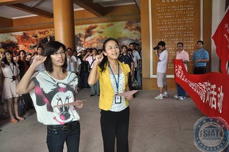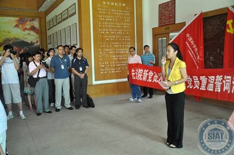 宣誓仪式庄严而不失隆重。党委书记、副院长白建原首先介绍了东江纵队的历史概况和此行目的。她说参观东江纵队纪念馆,是站在今天回望上个世纪30-40年代的一段历史,让大家了解在深圳这块热土地上曾经发生过什么,让大家知道前辈们为之浴血奋斗和我们今天幸福生活的关系;参观深圳市博物馆,是让大家了解深圳改革开放的先行者在30年中如何传承着东江纵队的精神,发扬敢为人先的创新精神做的贡献。她认为:“此次活动是放在历史长河里看党的历史、学习党史、传承党的信念和精神的活动,是精神上的饕餮大餐。希望大家用心去思考,思考革命传统与现实的工作有何种联系。希望在今天这样一个高速发展、快速变化的年代,可以用我们的生命和努力,为先进院、为深圳、为中国的科技事业而努力奉献。”党员宣誓后,新党员孙蓉同志和卢兰兰同志面对党旗表决心,表示将牢记在党旗下的誓言,在今后的工作中努力为党工作,做一名合格的中国共产党党员。