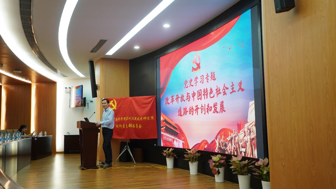 为深入学习贯彻习近平总书记在党史学习教育动员大会上的重要讲话精神,扎实推进中国科学院深圳先进技术研究院(以下简称“深圳先进院”)关于党史学习教育的部署要求,日前,脑所党总支联合脑所一支部,邀请脑所党总支联系委员、深圳先进院副院长许建国在E601会议室带领脑所党员同志,以“改革开放与中国特色社会主义道路的开创和发展”为主题,围绕“学党史、悟思想、办实事、开新局”这一目标进行了党史学习。