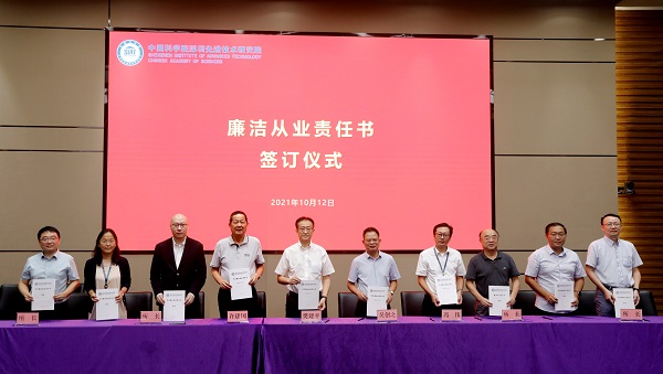 纪委书记冯伟综合分析国家、中科院的反腐倡廉形式,通报了内审共性问题和部分警示案例。新任转化处副处长章诵兰、科研处副处长孟龙也结合党史学习体会分享了各自工作领域的纪律规矩要求。会议还分层次签订了廉洁从业责任书。