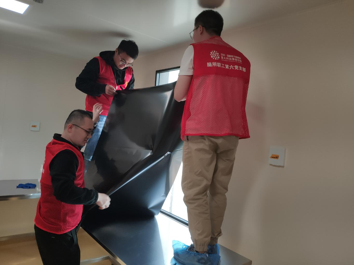 为在时间节点内完成搬迁入驻,脑设施团队在脑所党总支的指导下成立了多个专项工作小组,协同并进推动工程建设、实验动物资质获取、设备安装调试、动物搬迁等工作。脑所党员同志勇当先锋、坚守一线,严格按照倒排时间表保障了实验动物平台的建设和动物搬迁工作的推进。