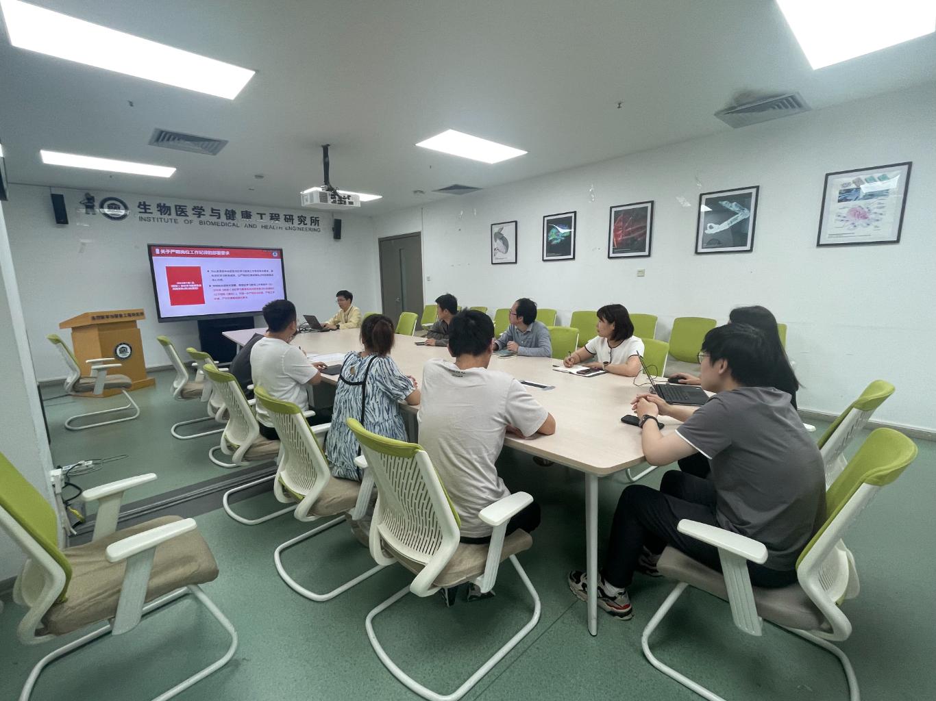 支部书记聂泽东同志作“深化党纪学习教育 严明岗位工作纪律”专题报告。聂泽东同志围绕“深圳先进院深入开展党纪学习教育情况及部署要求,严明岗位工作纪律落实情况及制度完善修订梳理;落实监督工作,推动‘三项制度’在本单位落地见效”三个方面进行介绍,要求党支部要密切关注党员职工的思想动态,持续加强思想引领、纪律教育和政策宣贯,引导党员职工增强遵规守纪的思想自觉、行动自觉。