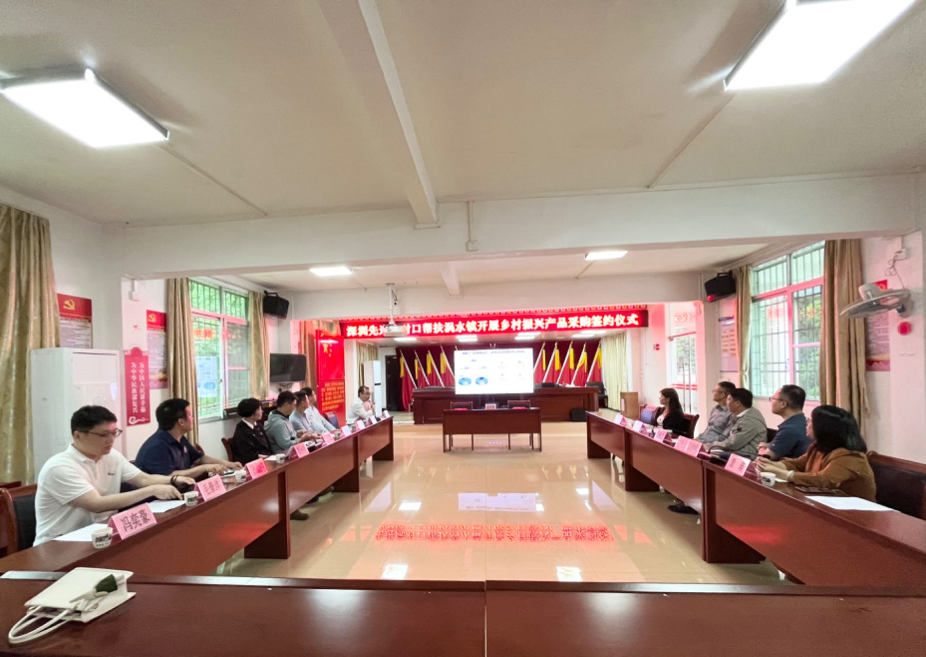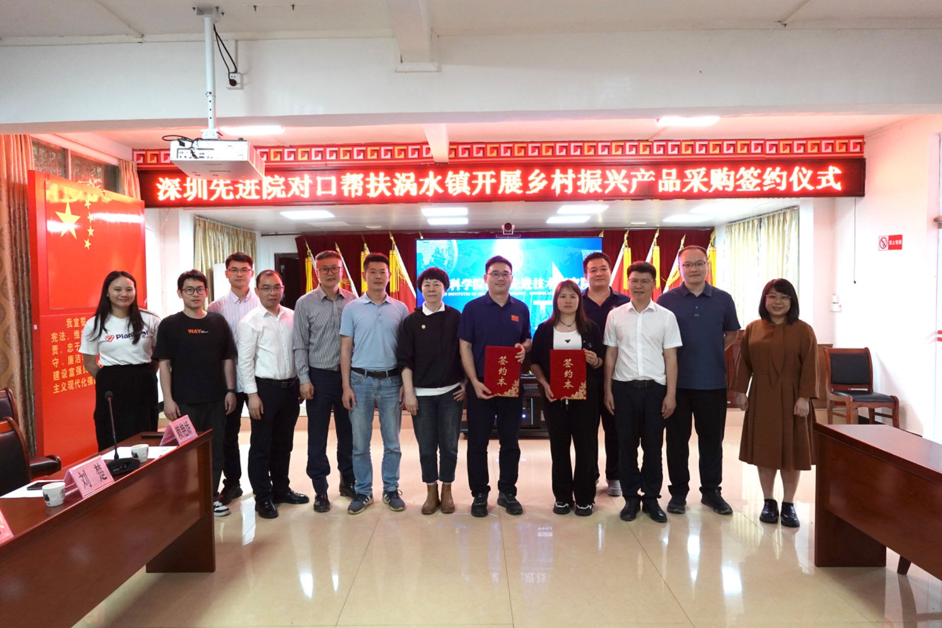 活动中,深圳先进院与涡水镇人民政府开展了座谈交流。镇政府介绍了近年来在特色农业开发、瑶族文化旅游、生态保护等领域取得的工作成效;双方就科技赋能产业、数字化乡村建设、城乡教育交流合作等方面进行了深入探讨。会上举行了乡村振兴产品采购签约仪式,积极响应国家消费帮扶号召,推动帮扶地区经济发展,促进农民增收致富。