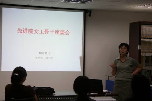 最后,党总支纪检委员李慧云博士向在座女工骨干介绍了先进院党总支关于深入学习实践科学发展观活动的部署和开展情况,她期望女职工骨干能够认真学习科学发展观,结合工作实际,用理论来指导实践,将个人的发展融入到先进院成长的各项工作中去。