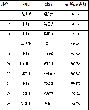其中,一周内健步步数在SIAT总排行榜前10名及每周新加入活动职工的前5名(不与每周达人奖重复奖励)分获“每周达人奖”、“每周新人奖”奖及50元科苑群团云工会提货券;此外,工会还在完成全部科学家名人事迹学习的职工中,随机抽取10名颁发学习达人奖及100元院科苑群团云工会提货券,名单如下: