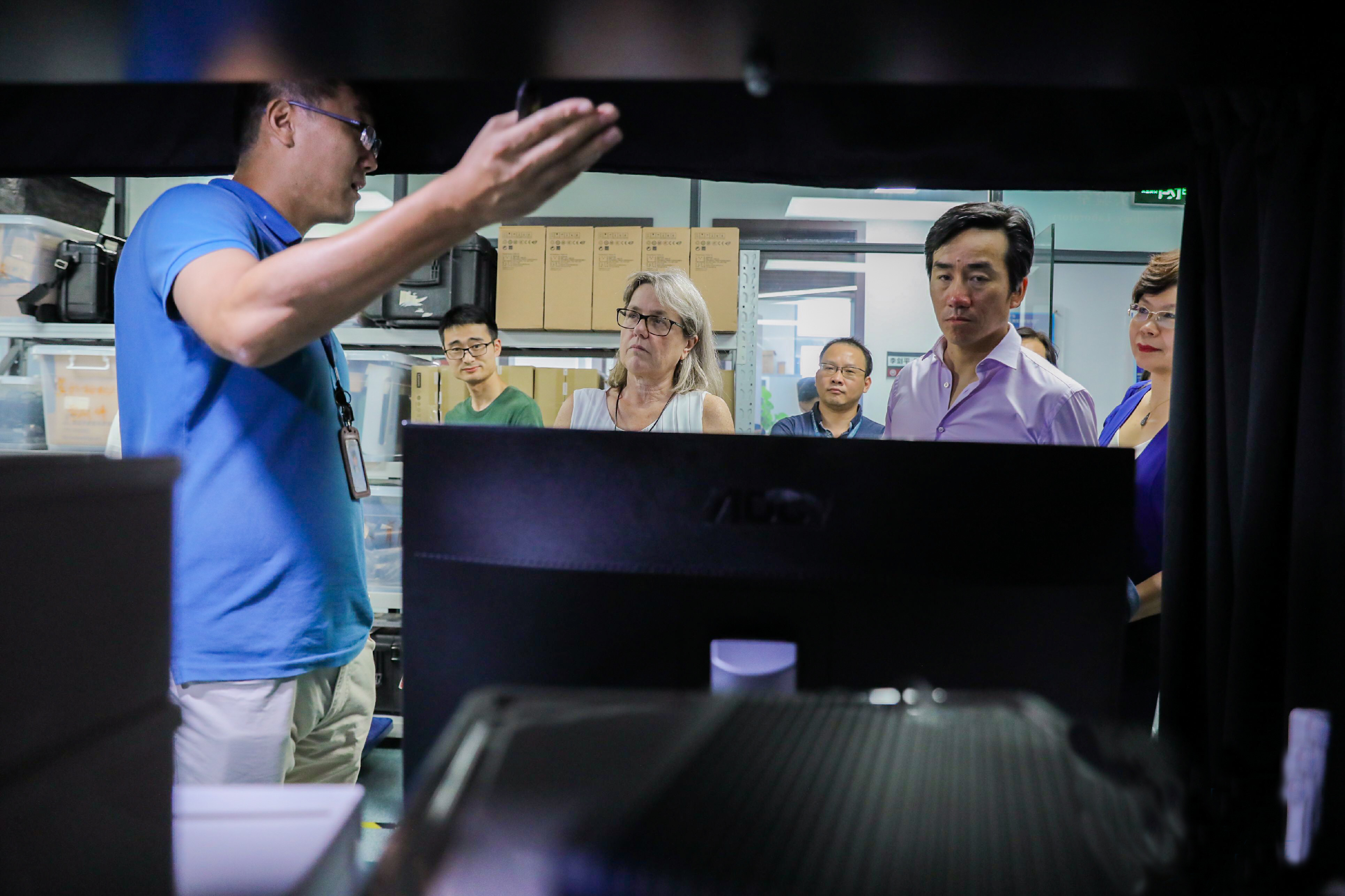 唐娜·斯特里克兰参观基于超声辐射力的深部脑刺激与神经调控仪器实验室、生物医学光学与分子影像研究室、光电工程技术实验室以及深圳内尔神经可塑性诺奖实验室(自上而下)