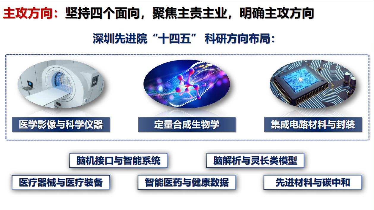 面向十四五,深圳先进院将进一步聚焦智能与生物技术的融合,致力于在生命健康领域提供新方法、新工具和新材料。在生物医学工程技术领域,在国家创新体系和华南区域源头创新活动中起骨干和引领作用;与一流国际学术水平接轨、与医疗器械产业需求接轨。