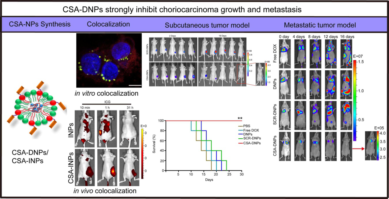 图:硫酸软骨素靶向纳米颗粒负载阿霉素抑制胎盘绒毛膜癌的生长与转移