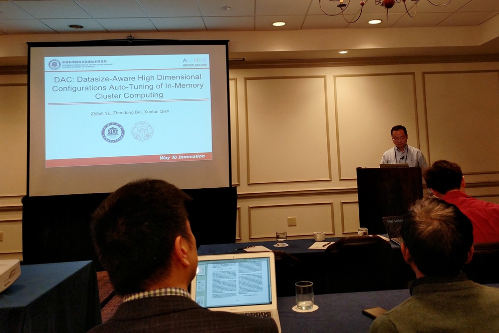 3月24至28日,ACM第23届体系结构支持的编程语言和操作系统国际会议(ASPLOS 2018)在美国弗吉尼亚州的威廉斯堡举行。中国科学院深圳先进技术研究院数字所异构智能计算中心喻之斌研究员和贝振东博士在该会议上宣读了被录用的长文(双栏14页)“DAC: Datasize-Aware High Dimensional Configurations Auto-Tuning of In-Memory Cluster Computing”。