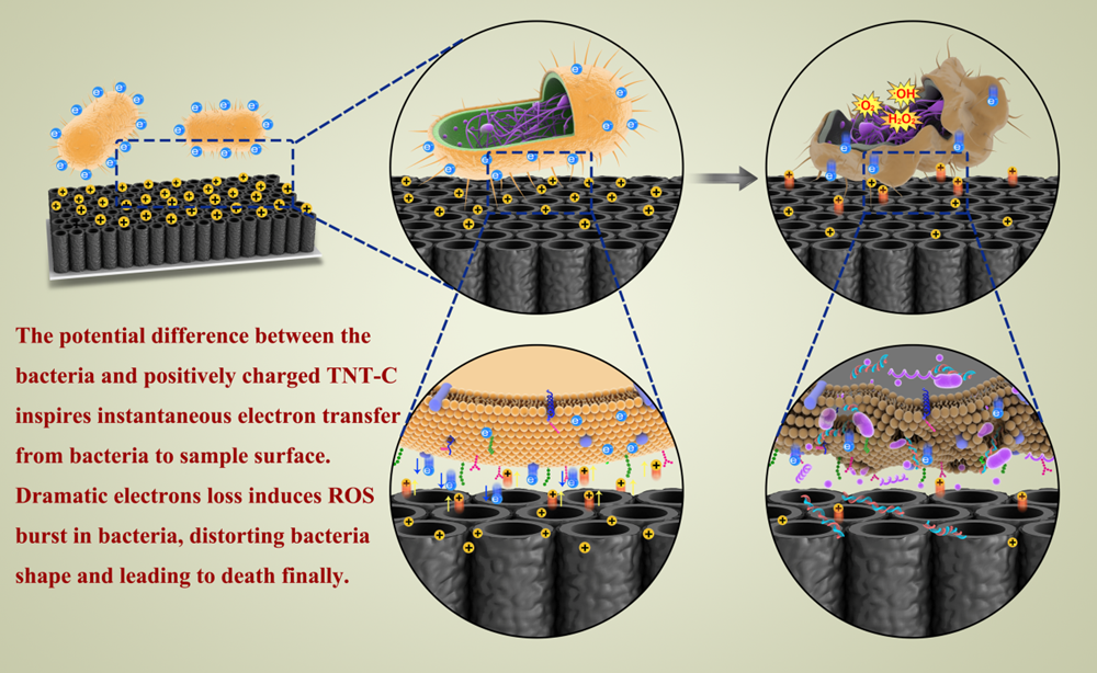 近日,中国科学院深圳先进技术研究院生物医用材料与界面研究中心王怀雨课题组与中国科学院北京纳米能源与系统研究所李舟课题组合作,成功开发一种基于电容涂层、通过充放电以实现有效抗菌的新型生物材料,该技术有望应用于牙科及骨科植入材料中以降低患者的术后感染风险。相关论文“An antibacterial platform based on capacitive carbon-doped TiO2 nanotubes after direct/alternating current charging(一种基于碳掺杂二氧化钛纳米管电容特性的新型抗菌平台)”发表在国际知名学术期刊《自然·通讯》(Nature Communications),论文的第一作者是香港城市大学博士生/深圳先进院客座学生王国敏,北京纳米能源所封红青博士为并列第一作者。