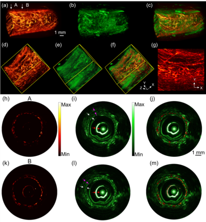 日前,中国科学院深圳先进技术研究院医工所生物医学光学与分子影像研究室在光声消化道内窥成像领域取得重大进展。该团队在国际上率先研制成功可进行360°全视场成像的光声/超声双模内窥成像系统,并可同时获取消化道壁血管(光声图像)和消化道壁组织结构(超声图像)的三维信息。相关科研成果以论文“In vivo photoacoustic/ultrasonic dual-modality endoscopy with a miniaturized full field-of-view catheter”发表在生物医学光学领域的旗舰期刊Journal of Biophotonics(影响因子:4.328)上。