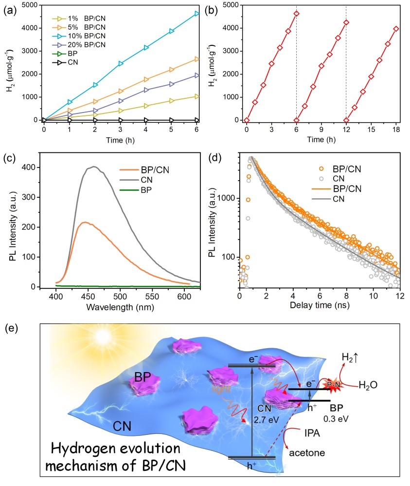 图2. 黑磷氮化碳异质结产氢机制图。