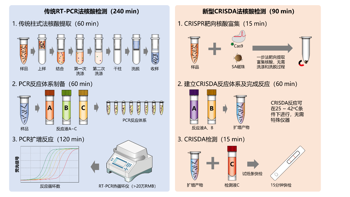 图1: 传统PCR技术与CRISDA检测技术对比。