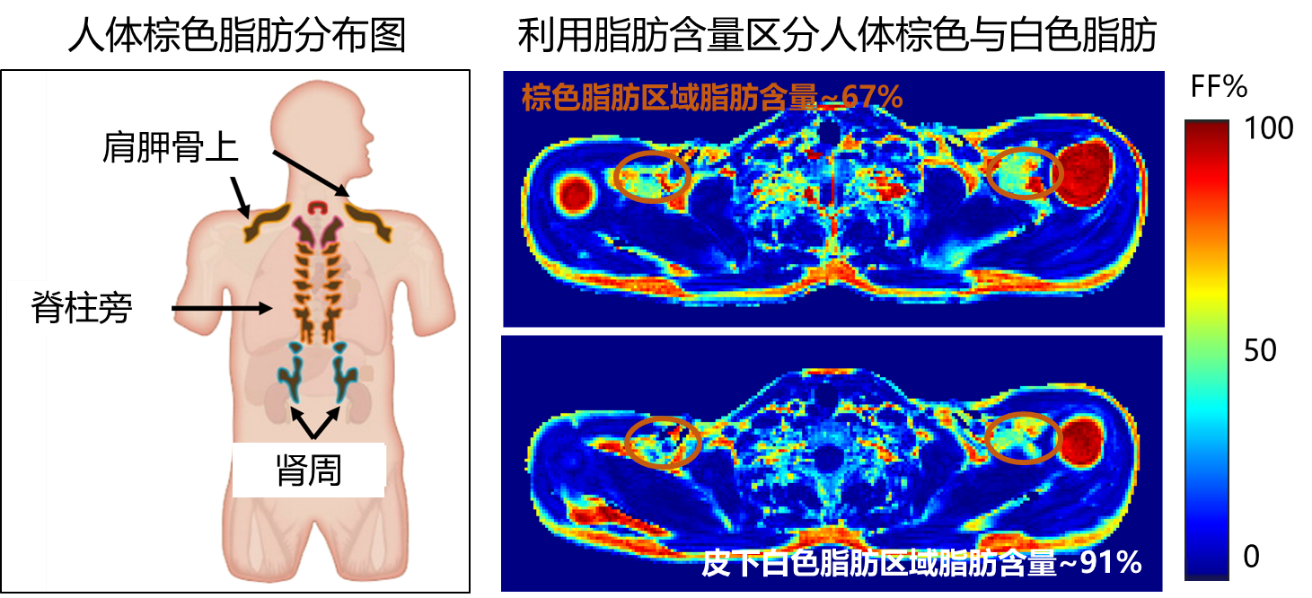 图4:棕色脂肪被认为是具有消耗能量的“好脂肪”。组织内的脂肪含量(FF)是区分棕色脂肪和白色脂肪的重要指标