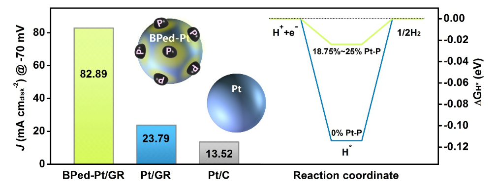 氢能作为一种环境友好的能源可用于替代化石燃料,电化学分解水制备氢气是获得氢能有效的方法之一。在电化学析氢领域,铂(Pt)由于其高性能和稳定性,是最有效且难以被替代的析氢反应(HER)催化剂,在氢燃料电池和很多工业催化中几乎无可替代。然而,由于铂在地壳中的储量极低,导致其成本高昂,一克铂的价格高达数百元,严重地阻碍了其大规模工业应用。因此,提高铂的催化效率对铂催化剂开发与应用至关重要。
