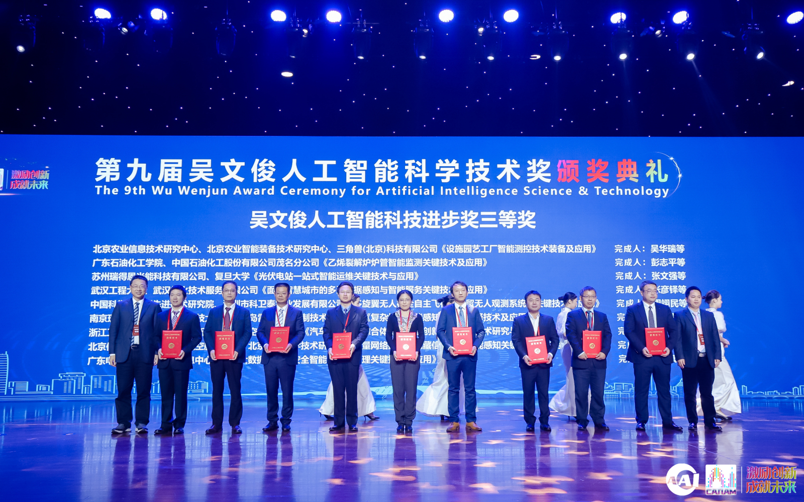 吴文俊人工智能技术发明奖三等奖颁奖(左二、左四分别为李慧云研究员、方鹏研究员,图片来源:中国人工智能学会)
