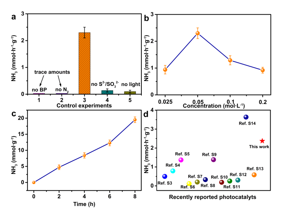 图2 多晶黑磷纳米片光催化固氮性能表征