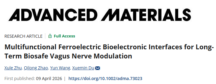 Advanced Materials | 多功能铁电生物电子实现长期安全有效迷走神经调控抗炎