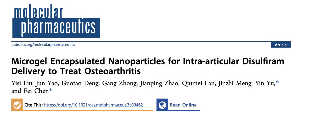 近日,中国科学院深圳先进技术研究院合成生物学研究所于寅/陈飞团队联合广西医科大学姚军主任医师在美国化学会药学旗舰期刊Molecular Pharmaceutics上发表题为Microgel Encapsulated Nanoparticles for Intra-Articular Disulfiram Delivery to Treat Osteoarthritis的论文。研究发现,一...