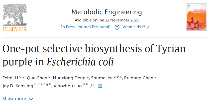 Metabolic Engineering | 罗小舟团队开发一锅法选择性生物合成Tyrian purple