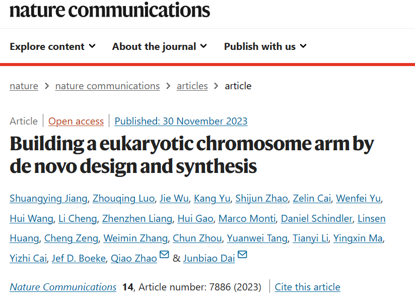 Nature Communications | Sc3.0重要进展,酿酒酵母染色体臂的精简与合成重构