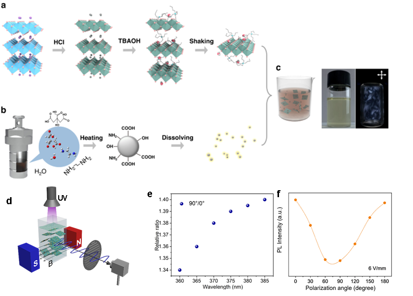 团队基于构建的0D/2D无机异质结纳米复合材料,成功孕育出了偏振发光特性,并展示了发光-调光-探测于一体的多功能光学元型器件